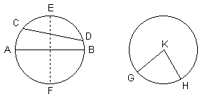 In III.1, Euclid finds the center of a given circle. Propositions 5 and 6 prove that two circles will not have the same center if they either cut (III.5) or touch (III.6) each other. Several theorems deal with the ways in which circles may or may not cut or touch each other. For example, that circles do not cut each other at more than two points is demonstrated in III.10. Proposition 16, about lines tangent to a circle, is historically interesting. It states: [71] The straight line drawn at right angles to the diameter of a circle from its extremity will fall outside the circle, and into the space between the straight line and the circumference another straight line cannot be interposed; further the angle of the semicircle is greater, and the remaining angle less, than any acute rectilineal angle. In the figure above, the tangent EF is drawn at the extremity of BE, the angle of the semicircle is angle DEC, and the remaining angle is angle DEF. The last part of this theorem introduces the problem of the nature of angles formed by curved lines and straight lines, especially tangents. There was great controversy over this subject in the 13th to 17th centuries, before the development of calculus gave a rigorous way of dealing with tangents, instantaneous slopes of curves, and the like. [72] Proposition 17 demonstrates how to draw a tangent to a circle from any given point outside the circle. In III.20 it is proved that an angle at the circumference of a circle is double the angle at the center when the two angles have the same circumference as a base (see figure below). That all angles inscribed in the same circular segment are equal is proved in III.21 (see figure). The circular arc is bisected in III.30. The penultimate theorem of Book III (the 37th) states that if two straight lines be drawn from a single point outside of a circle, one touching it and the other cutting it, then the rectangle contained by the whole of the cutting line and the segment external to the circle is equal to the square on the tangent line (see figure). |